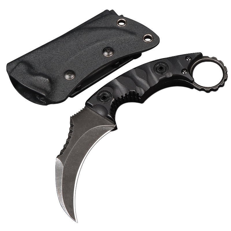 Karambit-Messer Camping Survival Outdoor-Messer Selbstverteidigung D2 Gerades Messer Hohe Hrte Taktisches Messer Integriertes Klauenmesser